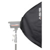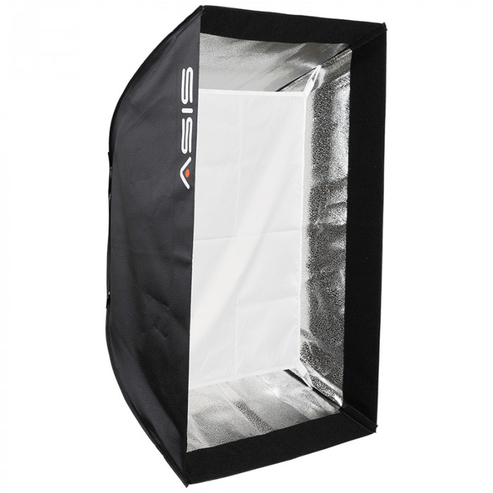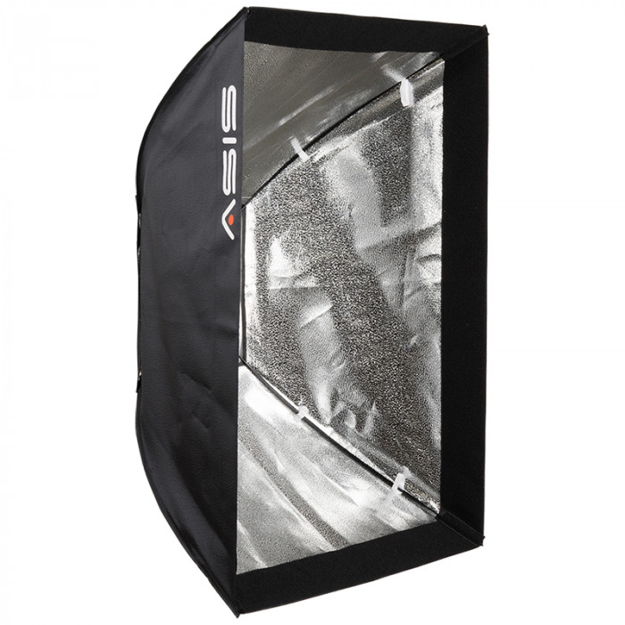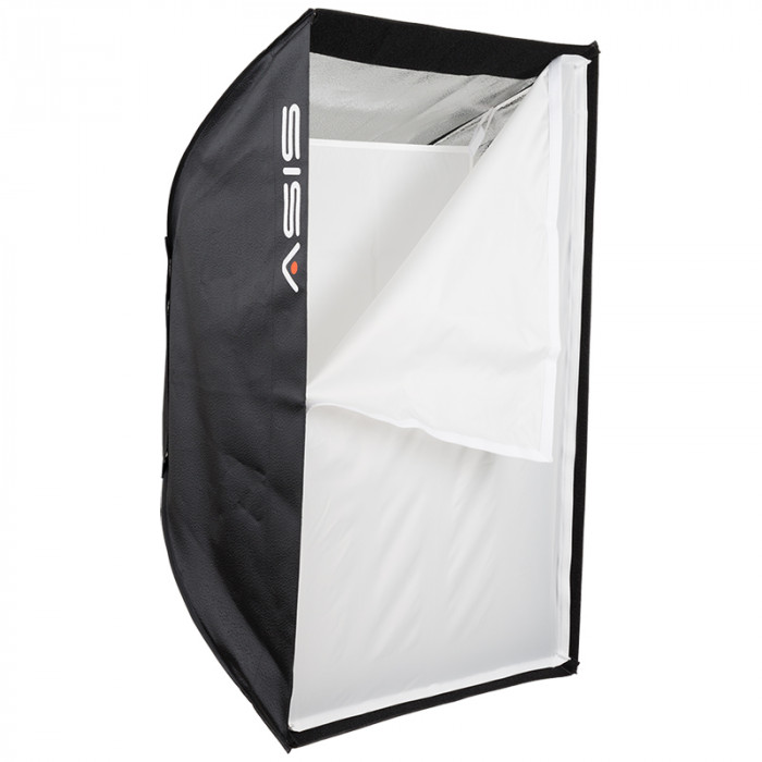 The Asis Softbox has a silver interior for high efficiency and an internal baffle to help create a soft diffused light. The baffle can be removed if desired. The softbox requires a standard speedring and adapter to be able to mount it onto a light head. Included is a carrying case to store the softbox in when not in use.