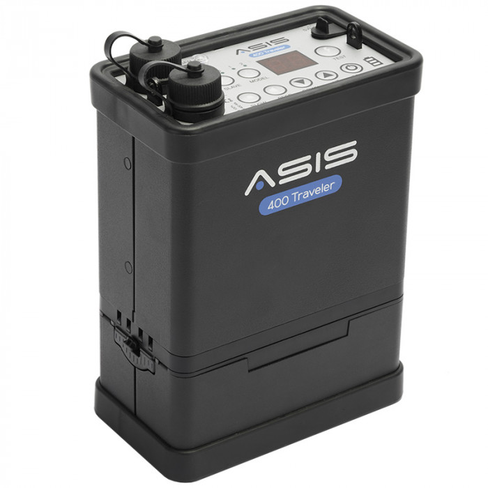 The ASIS 400 Traveler is a mobile photographer's best friend. Using two heads the battery pack has a 33/66 ratio and can power the lights for over 320 flashes. The system offers similar features to the Elinchrom Quadra at a fraction of the price!