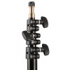 The 8' folding light stand is perfect for mounting strobes, continuous lights, and accessories. Its air-cushioned feature protects your equipment by slowly lowering the risers if the locks become suddenly untightened. The stand is topped with a 5/8" stud with a 3/8"-16 male thread for mounting lights or various accessories. When collapsed, the stand is 26.5" long. The 8' folding light stand is a lightweight, portable solution for your lighting needs.