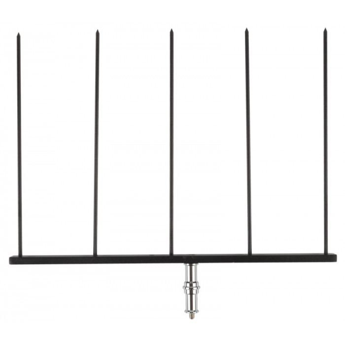 The Foam Core Fork allows foam core board or thick styrene to be mounted to clamps or grip arms to be used as a reflector or flag. The fork has a 3/8"-16 threaded hole for mounting. It also includes a brass double-ended stud for additional mounting options.