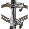 This Double-Riser Rolling Stand is a three-section stand with a maximum height of 118" (300 cm), a minimum height of 50" (127 cm), and weighs 26.5 pounds (12 kg). The stand comes with a set of wheels that feature a double-locking mechanism to lock both the roll and swivel of the wheel. On the top of a stand is a baby pin to attach clamps, arms, and other accessories.