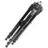 The center column can be positioned by the crank handle to fine-tune the height of the tripod. On top of the column is a 3/8" mount that will accommodate a wide range of different tripod heads. The bubble level near the center column will help with leveling the tripod on uneven terrain.