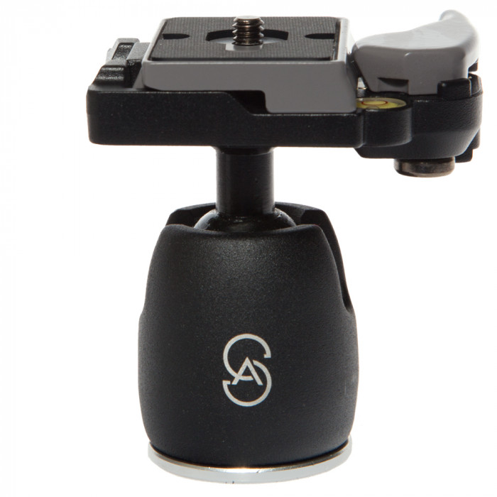 Mini Ball Head with 3/8" Tripod Mount and Quick Release Camera Plate. Ball head is only 3.25" tall and 3" wide.