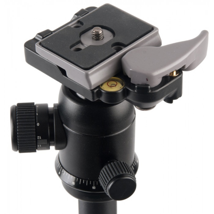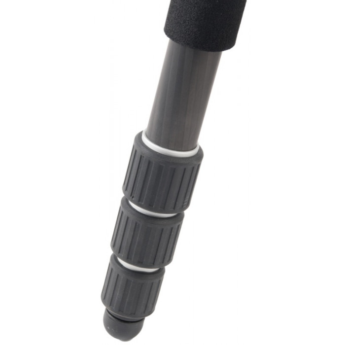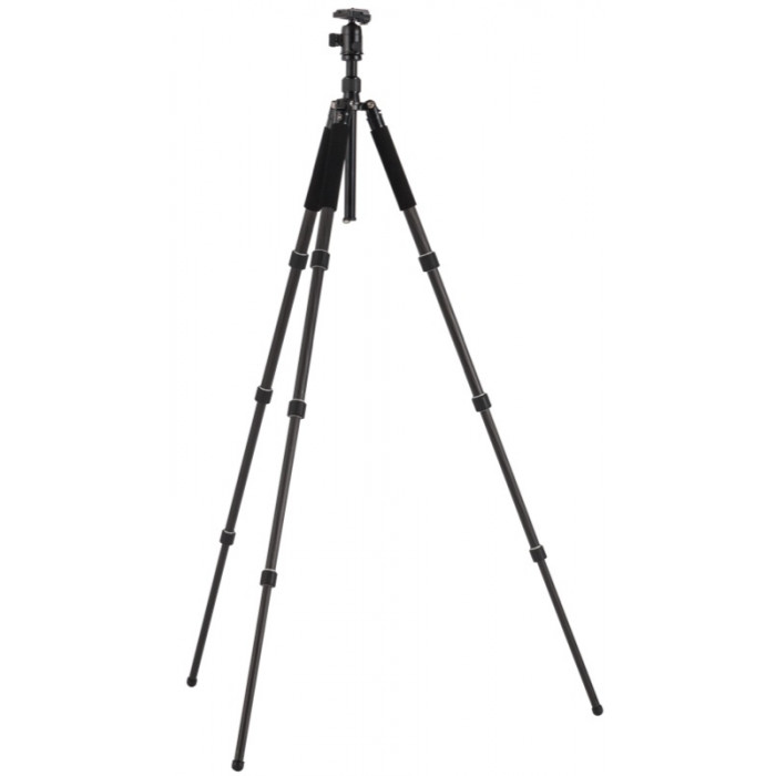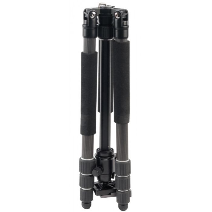 This compact and lightweight carbon fiber tripod features four-section legs that can reach a maximum height of 58.5" (141 cm) yet folds down to only 13" (33 cm). Each leg has a foam cover to provide a firm grip in cold and hot weather as well as to protect the tripod during transport. The tripod also has two leg angle positions and easy flip leg locks. The included ballhead features a built-in quick release plate system.