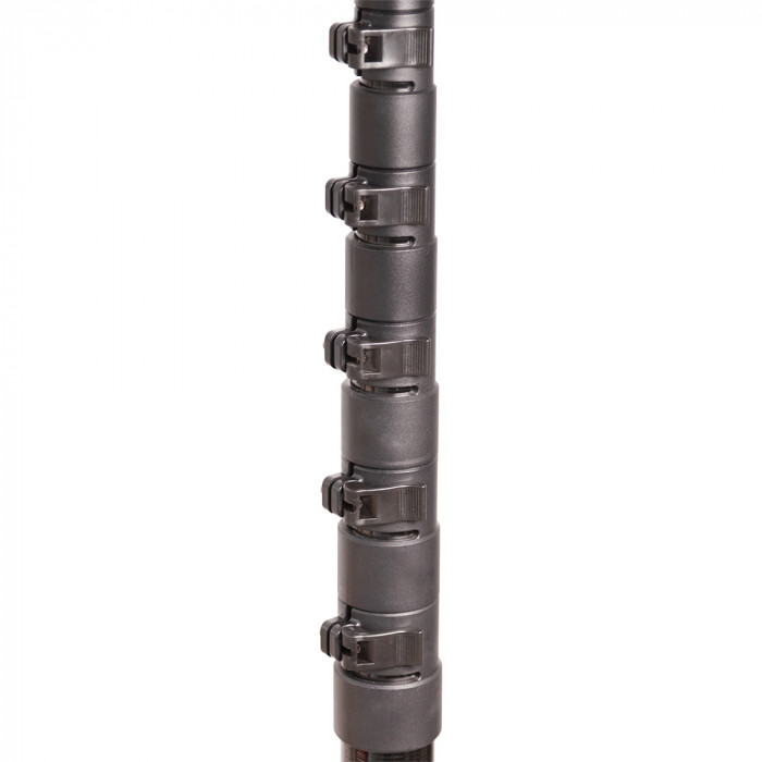 The MegaMast will give your camera an "aerial" perspective from 27.5" (8.4m) in the air without the need to fly expensive drones. The risers are made of sturdy carbon fiber tubes with large latches to make setup quick.