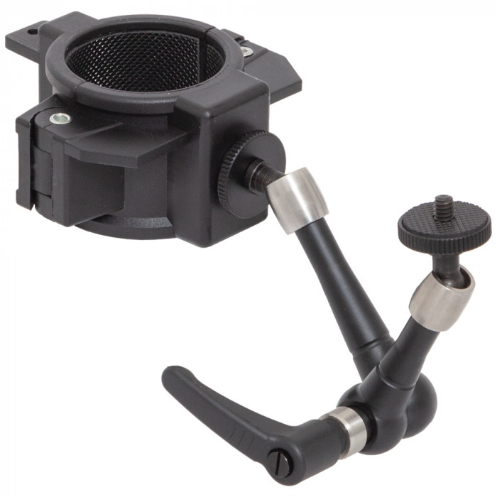 This kit allows you to mount your own monitor or tablet holder to the MegaMast. The articulating arm has a 1/4"-20 thread and allows you to position it up to 8.3" away from the center column on the mast.